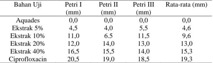 | Peneliti | Tahun | Metode Ekstraksi | Konsentrasi Ekstrak | Hasil |