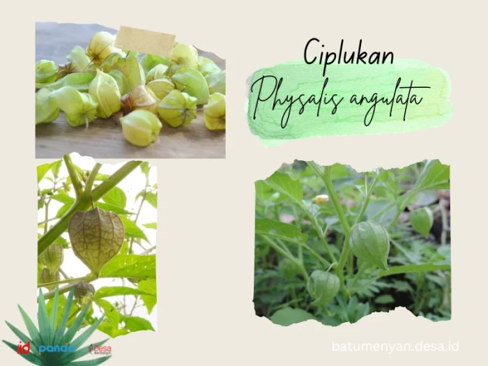 - Campuran dalam Makanan:Ciplukan dapat ditambahkan ke dalam berbagai makanan seperti salad, yogurt, atau oatmeal. Rasa manis dan sedikit asam dari ciplukan akan menambah cita rasa dan nutrisi pada makanan Anda.